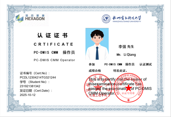 权威认证:通过考核即获校企双方认证 PC-DMIS CMM 操作员证书,简历添 “硬核背书”,秋招春招甩开同侪;
