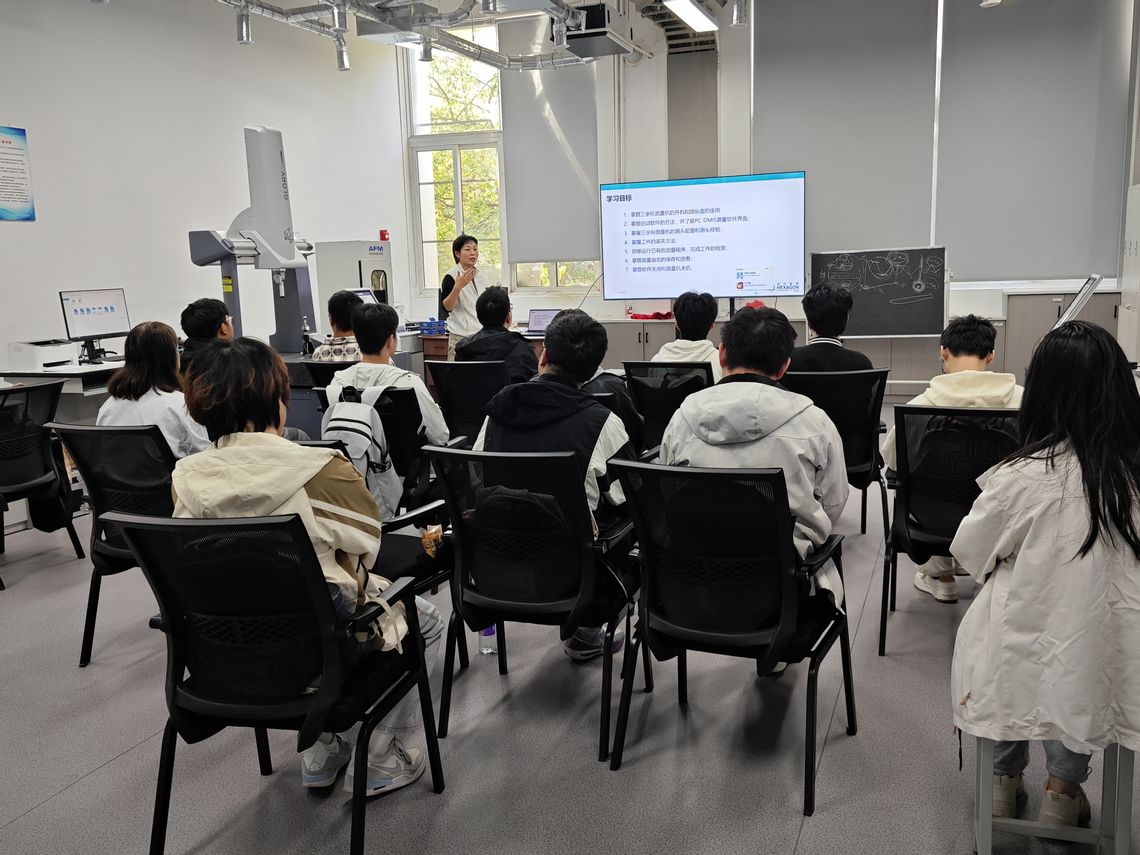 金秋时节,本学院立足行业前沿需求,首次开设“课证合一”三坐标测量课程,为本科四年级学生开辟了一条衔接精密测量工程师职业发展的创新路径。一个月以来,师生在系统性的教学与实践中互动顺畅,授课目标也随着日益精进的测量技术中稳步推进。