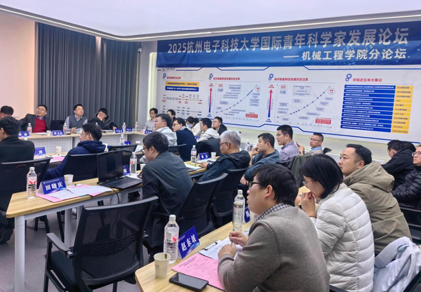 2025年12月28日至29日,杭州电子科技大学2025年国际青年科学家发展论坛——智能制造分论坛在第八教学楼机械科学大仪中心一楼会议室成功举行。本次会议采用线上线下相结合的方式,吸引了来自海内外的18位青年学者参加交流研讨。校人事处副处长陈上宝,机械工程学院全体领导班子成员、学院特聘教授张义民及各科研团队负责人出席了本次分论坛。会议由机械工程学院党委书记王胡英主持。